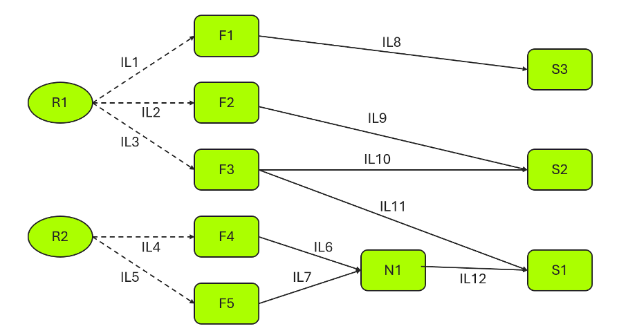Sur 3 typologies d’assets : infrastructure ponctuelle (sites de fournisseurs identifiés (F), noeuds critiques de logistique (N), sites en propres (S)), infrastructures linéaires (IL) et ressources (R)